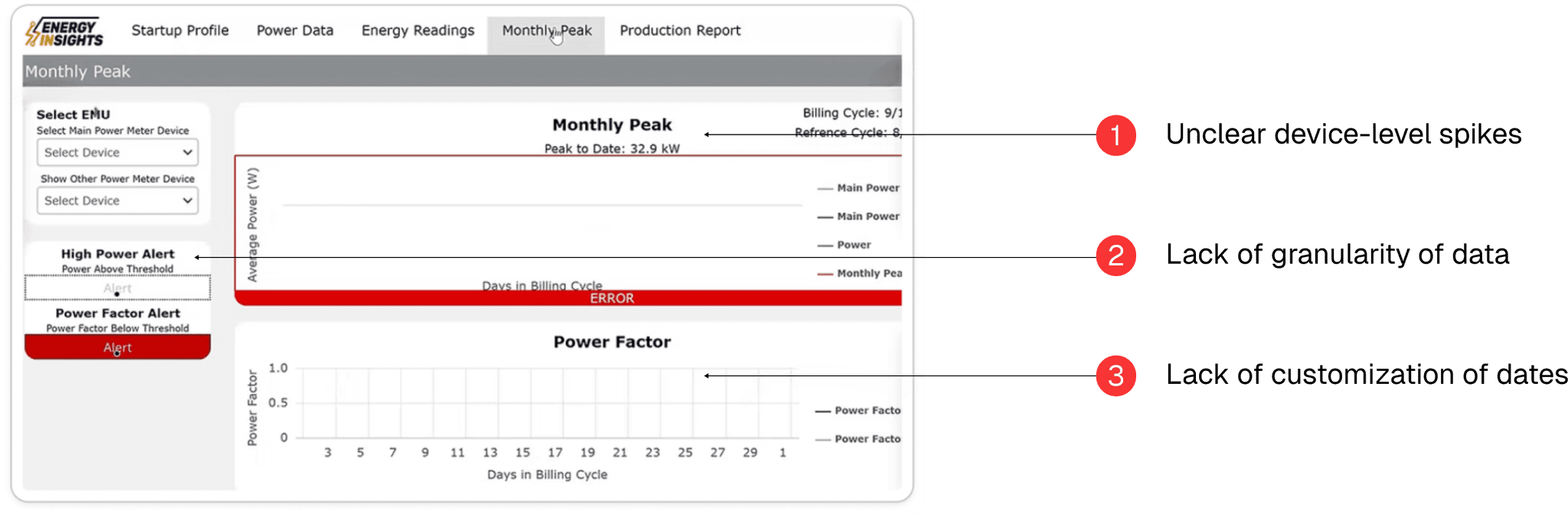 The system only provides a high-level monthly peak summary, limiting the ability to identify trends, anomalies, or optimize performance based on granular insights.
